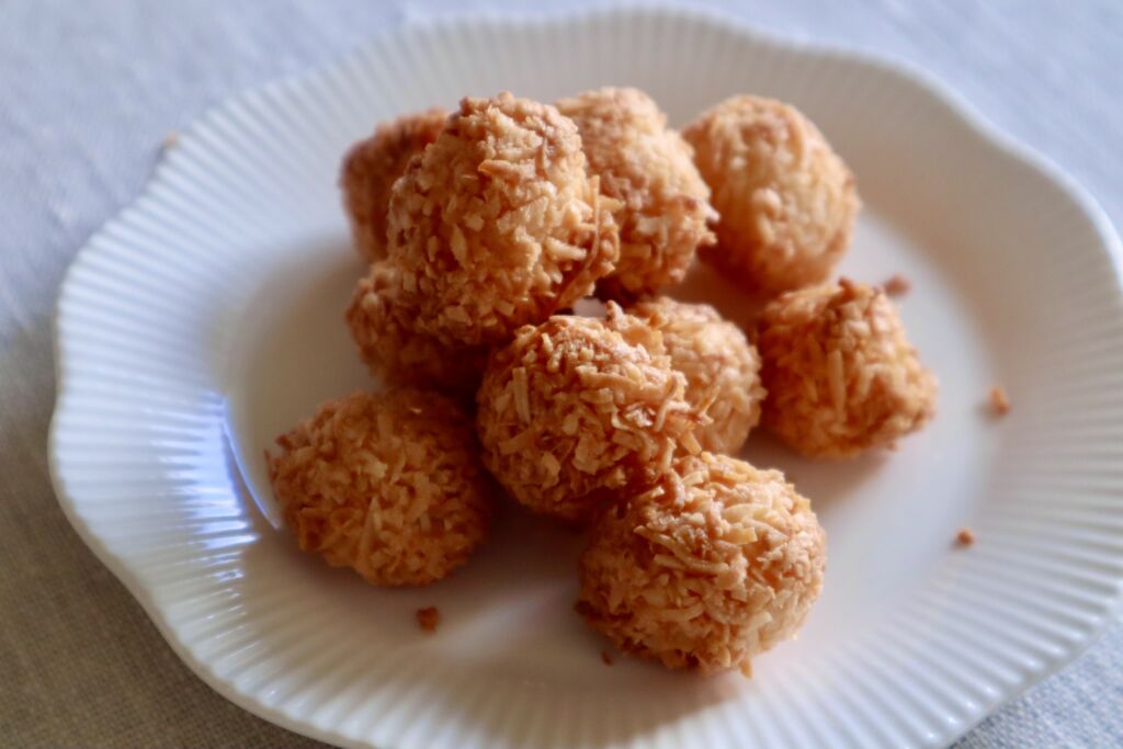 ●ココナッツロシェ フランス語で岩(Rocher)を意味する見た目がゴツゴツとしたココナッツクッキー